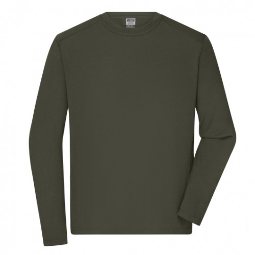 Чоловіча футболка на довгий рукав Workwear, оливкова — ідеальне рішення для брендування вашої компанії, яке працює на впізнаваність бренду щодня. James&Nicholson гарантує преміальну якість та довговічність нанесення логотипу.
