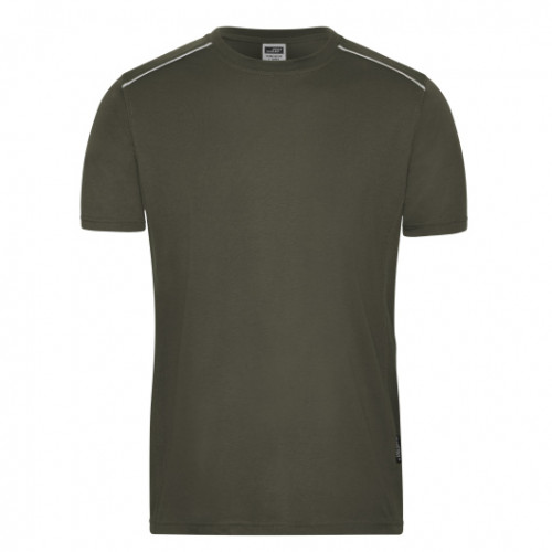 Чоловіча футболка Workwear, оливкова — ідеальне рішення для брендування вашої компанії, яке працює на впізнаваність бренду щодня. James&Nicholson гарантує преміальну якість та довговічність нанесення логотипу.