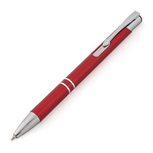Модель кулькової ручки DUNA червоного кольору (арт. 0; text-wrap-mode: nowrap;">11N02B1F2T) зі зносостійкого алюмінію зі зручним натискним механізмом досить легка і при тому міцна.
