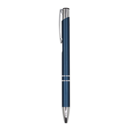 Модель кулькової ручки DUNA темно-синього кольору (арт. 11N02B7F2T) зі зносостійкого алюмінію зі зручним натискним механізмом досить легка і при тому міцна.
