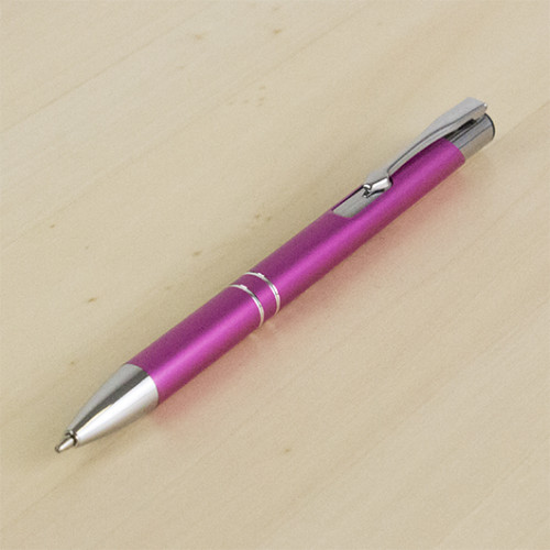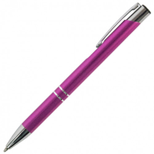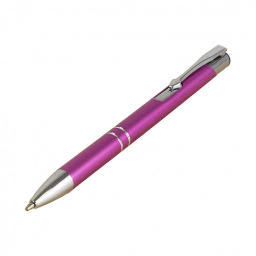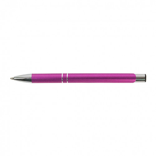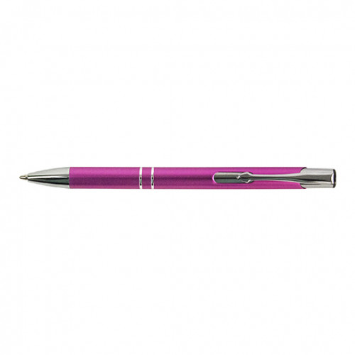 Модель кулькової ручки DUNA рожевого кольору (арт. 11N02BGF2T) зі зносостійкого алюмінію зі зручним натискним механізмом досить легка і при тому міцна.