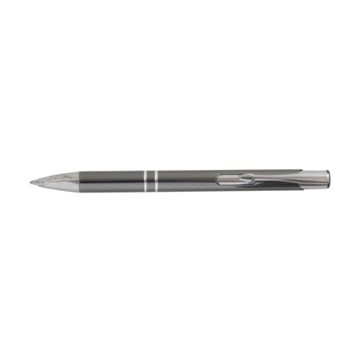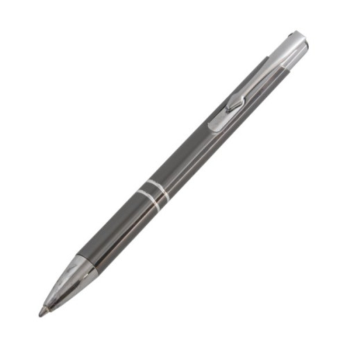Модель кулькової ручки DUNA темно-сірого кольору (арт. 11N02BHF2T) зі зносостійкого алюмінію зі зручним натискним механізмом досить легка і при тому міцна.