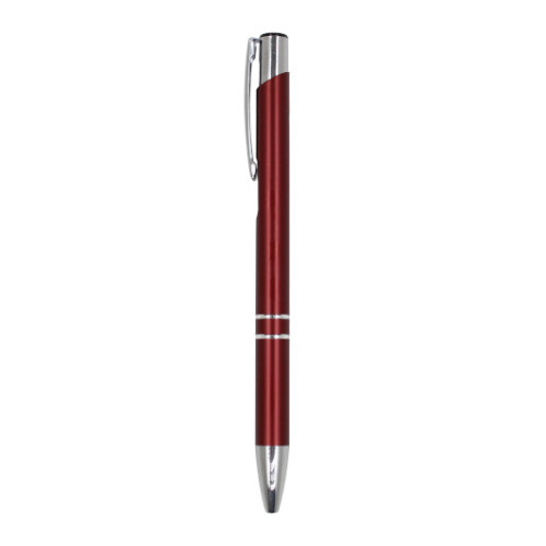 Модель кулькової ручки DUNA темно-червоного кольору (арт. 11N02BKF2T) зі зносостійкого алюмінію зі зручним натискним механізмом досить легка і при тому міцна.