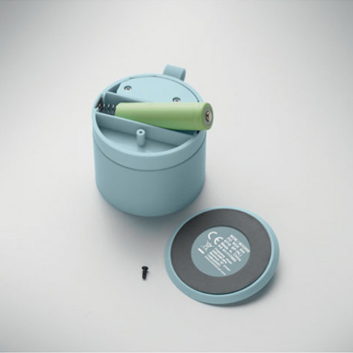 Модель оснащена змінною батареєю ємністю 500 mAh, що забезпечує автономну роботу без постійного підключення до мережі. Завдяки компактній і сучасній конструкції колонку зручно брати із собою в дорогу або використовувати як стильний настільний аксесуар.