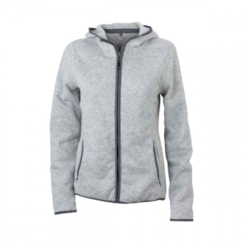 Куртка з капюшоном жіноча із в'язаного флісу James Nicholson, світло-сірий/ темно-сірий — ідеальне рішення для брендування вашої компанії, яке працює на впізнаваність бренду щодня. James&Nicholson гарантує преміальну якість та довговічність нанесення логотипу.