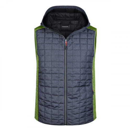 Жилет чоловічий c капюшоном, JN768, зелений/темно-сірий — ідеальне рішення для брендування вашої компанії, яке працює на впізнаваність бренду щодня. James&Nicholson гарантує преміальну якість та довговічність нанесення логотипу.
