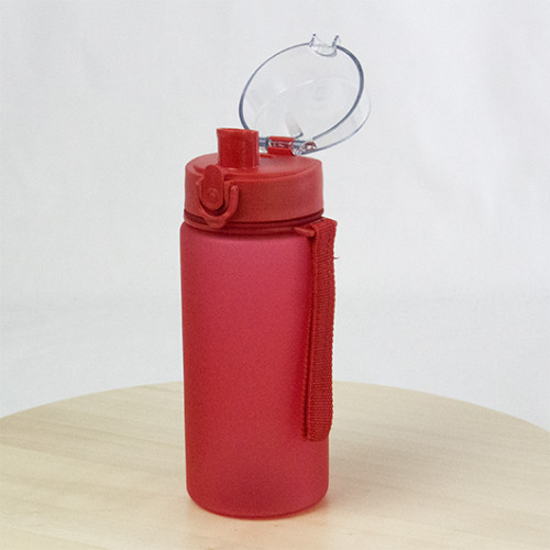Пляшка для води OSLO це практичний аксесуар зі стильним сучасним дизайном. Герметична пляшка об’ємом 520 мл оснащена відкидною прозорою кришкою з поїльником та зручним фіксатором і текстильним ремінцем з міцної тканини для комфортного перенесення. На корпус пляшки нанесено софт-тач покриття червоного кольору (арт. 35N723510).