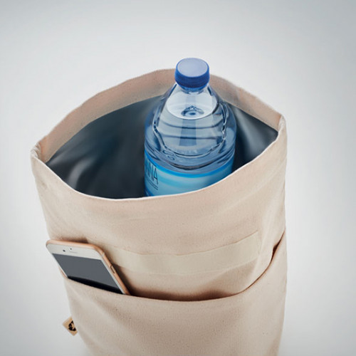 Стильна ізотермічна сумка RECOBA, виготовлена з екологічної переробленої бавовни. артикул MO675113. Внутрішній шар із алюмінієвої фольги забезпечує надійну термоізоляцію, зберігаючи продукти та напої свіжими. Модель має міцні ручки та зручну застібку на блискавці. Ідеальне поєднання натуральних матеріалів та функціональності для щоденного використання.