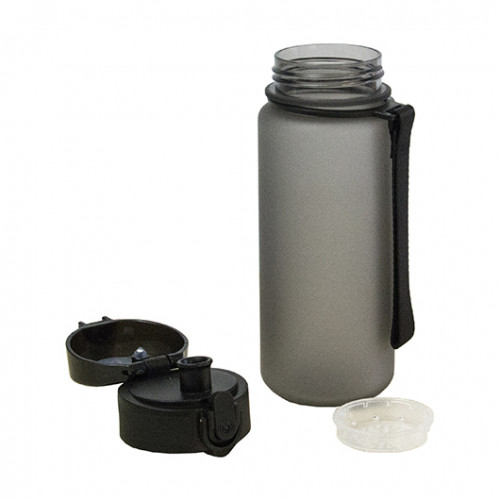 Пляшка з ремінцем та ситечком CARIBO темно-сірого кольору (арт. 35N7205HH) виготовлена з інноваційного матеріалу Tritan™. Це сучасна альтернатива звичайному пластику та склу, яка поєднує легкість, міцність і безпеку для здоров’я.